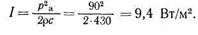 Для наглядного представления о величинах звукового давления и интенсивностей звука приведем следующий пример. Пронзительный, еле переносимый человеком звук гудка локомотива создает избыточное давление примерно в 90 Па. Воспользовавшись формулой и данными таблицы, вычислим интенсивность звука в воздухе