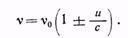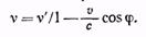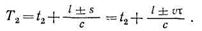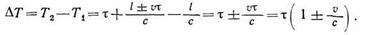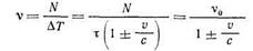 (Знак «+» относится к удаляющемуся источнику, а знак «–» к приближающемуся.) Промежуток времени, в течение которого наблюдатель воспринимает два следующих друг за другом сгущения волны, будет