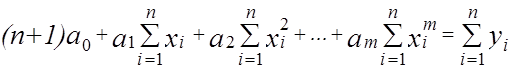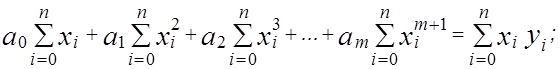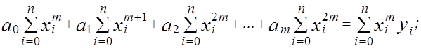 Приравнивая эти выражения нулю в соответствии с уравнением (2.4) и группируя коэффициенты при неизвестных a0, a1, …, am, получим следующую систему уравнений: