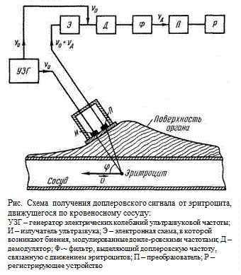 Диагностика на основе эффекта Доплера. Особенно большими возможностями и преимуществами обладает разновидность ультразвукового эхо-метода, основанная на эффекте Доплера, позволяющая не только изучать расположение тех или иных органов и участков тканей, но и физиологические процессы в их динамике.