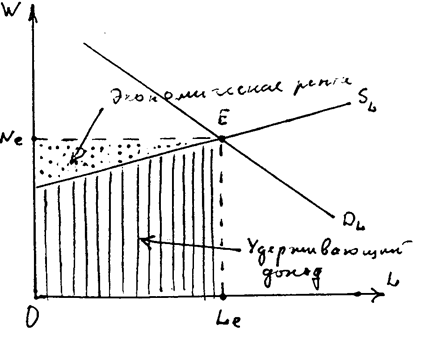 Общий денежный доход владельца ресурса распадается на две части, - удерживающий доход и экономическую ренту.