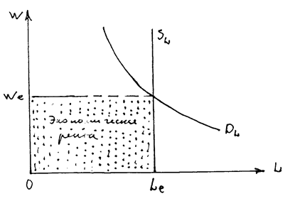 На рис. 7.4 рыночная ставка оплаты труда дворников есть W e. Заштрихованная площадь под кривой предложения труда дворников представляет удерживающий доход всех дворников, а заполненная точками площадь – экономическая рента всех дворников, кроме последнего (весь его доход представлен только удерживающим доходом). Очевидно, что пропорция разделения общего дохода всех дворников между удерживающим доходом и экономической рентой зависит от эластичности кривой предложения их труда. Чем менее эластично предложение, тем большая доля приходится на экономическую ренту. Чем большее увеличение ставки зарплаты требуется для привлечения дополнительного работника, тем большую экономическую ренту получат те, кто уже занят в данной сфере ранее.