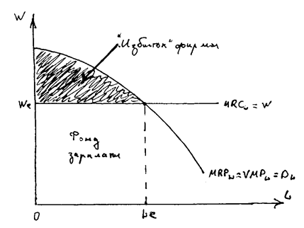 Рис. 7.8 Заработки работников и “избыток” фирмы.
