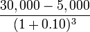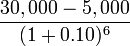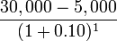 Как уже упоминалось выше, что результат этой формулы, если, умноженная на годовой Чистые денежные средства, в-потоки и сократить на первоначальные затраты средств будет Чистая приведенная стоимость (NPV), так [4,36 * (30000 − 5000)] − 100000 = $8881,52. Поскольку NPV больше нуля, то было бы лучше инвестировать в проект, чем ничего не делать, и корпорации должны вкладывать средства в этот проект, если нет альтернативы с более высоким NPV.