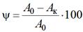 Относительное сужение после разрыва ψ – отношение разности A 0 и минимальной A к площади поперечного сечения после разрушения к начальной площади поперечного сечения образца A 0, выраженное в процентах