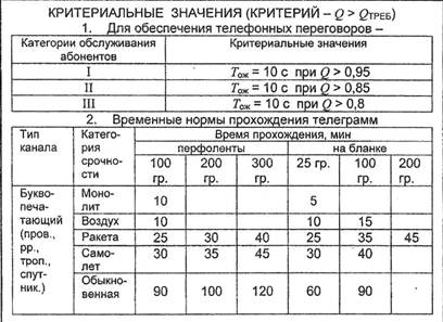 | Вероятность передачи сообщений (установления связи) за время не более допустимого для различных видов связи и категорий срочности при заданной интенсивности нагрузки: Q = P(tож < Tож доп) или Q = P(tcc |