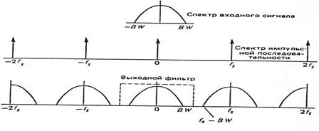 Входной сигнал перед дискретизацией должен быть ограничен по полосе, чтобы можно было удалить из него составляющие с частотой выше, чем Fд /2, даже если этими составляющими, как неслышимыми, можно было бы пренебречь. Таким образом, полная АИМ-система должна иметь фильтр, ограничивающий полосу сигнала перед дискретизацией, для гарантии того, что никакие ложные или связанные с источником сигналы не приведут к появлению помех в требуемой полосе вследствие наложения спектров после дискретизации. Поэтому этот фильтр часто называют фильтром защиты от перекрытия спектров.
