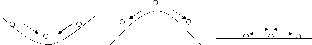 Важное значение в макроэкономике имеет изучение равновесных состояний. При этом различают три вида равновесия: устойчивое, неустойчивое и нейтральное (рис.1.5). Равновесие в системе считается устойчивым, если, будучи выведенной из равновесного состояния, система самостоятельно в него возвращается; неустойчивым, если не возвращается, и нейтральным, если невозможно определенно сказать, вернется ли система в исходное состояние или нет.