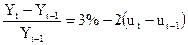 Отставание фактического ВВП любого года можно подсчитать не только по отношению к потенциальному объему выпуска, но и по отношению к фактическому ВВП предыдущего года. Формулу для такого расчета также предложил A.Оукен: