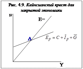 «Кейнсианский крест» для закрытой экономики (для трехсекторной модели экономики) изображен на рис.4.9.