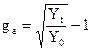 Причем, даже небольшие различия в темпах роста могут привести к громадным различиям в уровне дохода и выпуска между странами по прошествии ряда лет. Это происходит благодаря накапливаемому росту (сompound growth), т.е. кумулятивному эффекту. Кумулятивный эффект подсчитывается по формуле «сложного процента», когда учитывается процент на ранее полученный процента. Так, если величина ВВП в стране составляет 100 млрд.долл. и среднегодовой темп роста ВВП составляет 10%, то величина ВНП в конце первого года составит 110 млрд.долл. (100+100 х 0.1=110), в конце второго года 121 млрд.долл. (100+100 х 0.1+ (100+100 х 0.1) х 0.1=121), в конце третьего года 133.1 млрд.долл. (100+100 х 0.1+ (100+100 х 0.1) х 0.1+ [(100+100 х 0.1) х 0.1] х 0.1)=133.1) и т.д. Итак, если известен среднегодовой темп прироста ВНП (ga – annual growth rate), то, зная исходный уровень ВВП (Y0) и используя формулу сложного процента, можно рассчитать величину ВВП через t лет (Yt):
