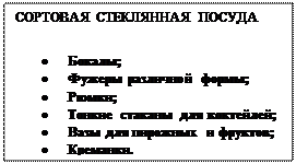 Определен стиль и назначение бокалов, фужеров и рюмок, причем форма должна отвечать современным эстетическим требованиям и целесообразности ее применения в целях сохранения аромата напитка.