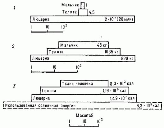 Рисунок – Пирамида чисел (1), биомасс (2), энергий (3).