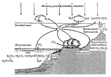 Рисунок – Упрощенная схема некоторых путей круговорота кислорода на Земле