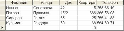 18. Чем определяется структура таблицы базы данных Access?