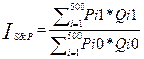 Большую известность получил другой американский индекс — S&P-500 (Standard and Poor's). Он охватывает акции 500 компаний, в том числе 425 промышленных. Его основная особенность заключается в том, что при расчете не используется принцип равновзвешенности цен по числу проданных акций. Таким образом, он отражает роль каждого набора акций в процессе их реализации и учитывает степень влияния на результат наиболее активных акций с большей массой стоимости. Формула для его расчета имеет следующий вид: