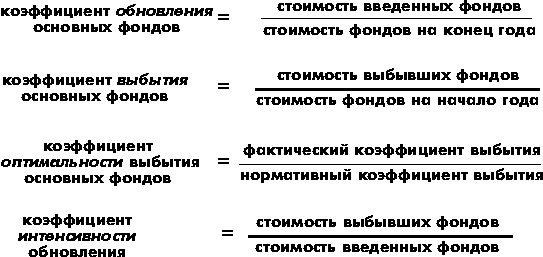 Для характеристики воспроизводства основных фондов используют следующие показатели: