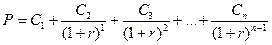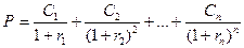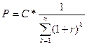 Р – настоящая (текущая) стоимость денежных средств (финансовых активов), т.е. оценка величины C с позиции текущего момента;