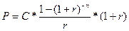 Приведенная стоимость срочного аннуитета (одинаковый размер поступлений денежных средств через равные промежутки времени) (постнумерандо) определяется следующим образом: