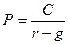 Приведенная стоимость активов, платежи по которым возрастают с постоянным темпом g неограниченный период времени, определяется по формуле: