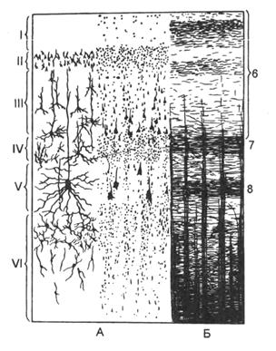 В чувствительных отделах коры (90%) содержатся хорошо развитые 2, 4 слои—наружный и внутренний зернистые слои. Такая кора относится к гранулярному типу коры.