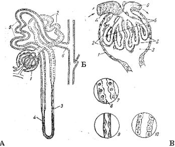 Паренхима почки представлена почечными тельцами и эпителиальными канальцами, которые при участии кровеносных сосудов образуют нефроны. В каждой почке их насчитывают около 1 млн.
