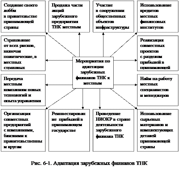 Для адаптации к условиям принимающих стран ТНК проводят мероприятия, показанные на рисунке 6-1