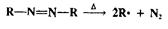 1. Термическое расщепление. При достаточно высоких температурах в газовой фазе любая органическая молекула дает свободные радикалы. При энергии связей от 20 до 40 ккал/моль расщепление можно вызвать и в жидкой фазе. Типичным примером служит расщепление азосоединений: