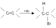 CH3-CH=CH2 + HBr → CH3-CH2-CH2Br