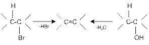 Реакции элиминирования по существу обратны реакциям присоединения; наиболее обычный тип такой реакции – отщепление атома водорода и другого атома или группы от соседних атомов углерода с образованием алкенов: