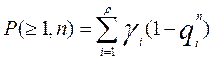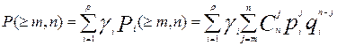 а вероятность появления п- элементной комбинации с т и более ошибками определяется как:
