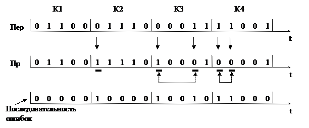 Двоичная последовательность, у которой на местах ошибок стоят 1, а на местах правильно принятых элементов 0, называется последовательностью ошибок.