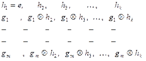 , не принадлежащий Н, и записываем его на первое место во второй строке, а все остальные элементы второй строки находятся применением заданной в группе операции над первым элементом второй строки и соответствующими элементами подгруппы H, записанными в первой строке. Аналогично образуются третья, четвертая и т.д. строки, до тех пор, пока все элементы