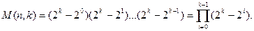 Общее же число наборов k линейно независимых комбинаций из множества 2 k кодовых комбинаций составит число