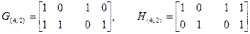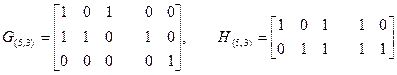 Вычеркиваем из матрицы G(5,3) третью строку и пятый столбец, а из матрицы Н(5,3) пятый столбец. В результате получаем порождающую матрицу и матрицу проверок кода (4, 2):