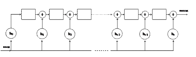 Когда по первому тактовому импульсу на входе появляется первый коэффициент