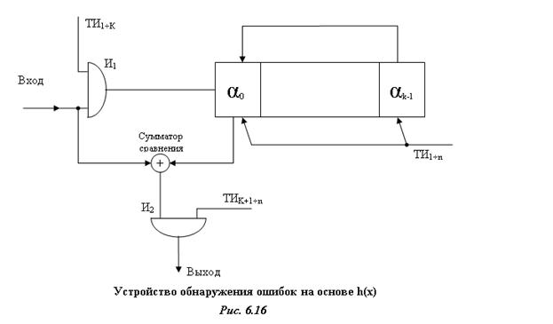 Структурная схема устройства обнаружения ошибок, реализующая описанную процедуру, представлена на рис. 6.16.