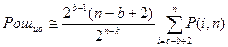 В случае исправления пачек ошибок можно аналогичными рассуждениями получить нижнюю границу для числа проверочных элементов. Действительно, пусть известно, что групповой (n, k) – код исправляет все пачки ошибок длины b. Значит общее число смежных классов в таблице декодирования должно быть не меньше, чем число возможным пачек длины b. В комбинации длины п возможно всего п пачек длины 1, п -1 пачек длины 2, 2(п -2) пачек длины 3 и т.д. Общее число пачек длины b в комбинации длины п равно
