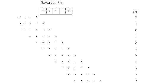 Знаки “-” и “+”обозначают -1 и +1 соответственно. Ввиду симметричности автокорреляционных функций относительно нулевого сдвига (k=0) в таблице дана только одна ее ветвь.