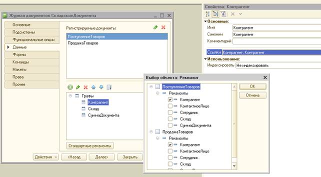 В журнале может быть любое (в разумных пределах) количество граф. При создании графы необходимо от каждого вида документа выбрать по реквизиту (только по одному, но можно разных типов), который будет в ней отображаться.
