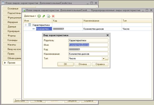 На закладке «Прочие» можно определить перечень предопределенных видов характеристик.