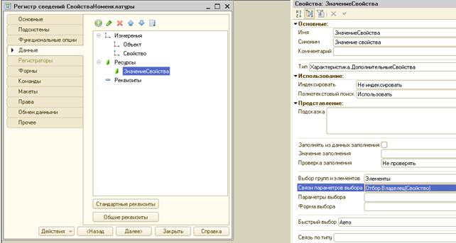 Создадим регистр сведений «СвойстваНоменклатуры» (независимый, не периодический, редактируется в диалоге)
