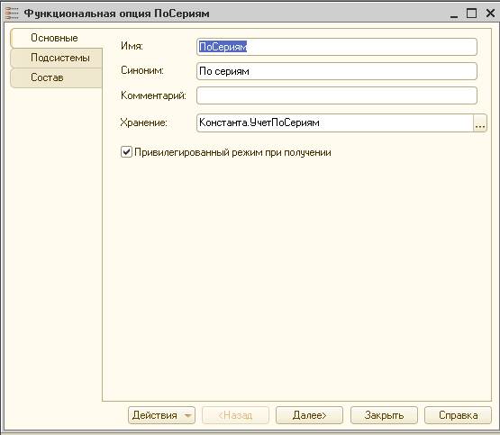 Функциональные опции позволяют разработчику описать возможности конфигурации, которые можно оперативно включать или выключать на этапе внедрения и/или в процессе работы системы.