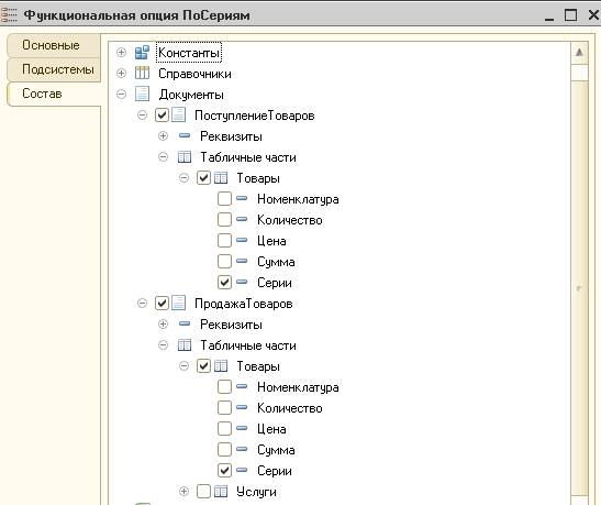 Проверим данную возможность на практике. Необходимо иметь возможность включения/отключения учета товаров в разрезе серий.