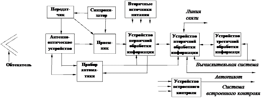 Укрупненная функциональная схема координатора или ГСН приведена на рис.1.2. От внешней среды координатор защищен обтекателем, иллюминатором или другим защитным устройством, прозрачным для того диапазона электромагнитного излучения, который используется для получения информации об объекте наблюдения или цели. Входным устройством координатора является антенно-оптическое устройство (АОУ), формирующее угловое поле зрения координатора и управляющее его угловым положением относительно корпуса БПЛА.