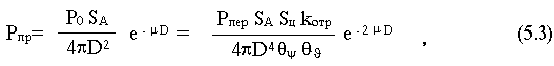 Формула (5.4) справедлива при условии диффузного отражения цели, а также при условии, что Sц < qy qu D2, т.е. для случая полного вписывания контура цели в пятно засветки лазерного луча. В том случае, когда лазерный луч полностью вписывается в контур цели, принимаем Sц = qy qu D2, тогда уравнение (5.4) имеет вид