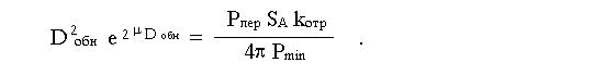 Если на выходе приемной системы минимальная мощность, принимаемая за отраженный сигнал, Pmin= Pш r, где Pш - приведенная к входу системы мощность шума в полосе пропускания приемника, r коэффициент запаса, определяемый по критерию Неймана-Пирсона, то максимальная дальность обнаружения Dобн цели определяется уравнением: