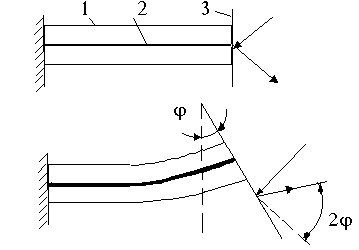 Пьезоэлектрические сканирующие устройства. Для поворота зеркала в оптико-механических сканирующих устройствах могут быть использованы пьезолектрические преобразователи. Схема отклоняющего устройства такого типа показана на рис. 5.8.