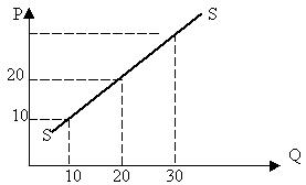 Все продавцы стремятся получить на рынке самую высокую цену, чем выше будет цена, тем большее количество товара они готовы поставить на рынок, т.е. увеличить предложение. Например, при цене 10 руб. производитель готов продать 10 единиц блага, при цене 20 руб. – 20 единиц, а при цене 30 руб. – 30 единиц блага. Графически данная зависимость называется кривой предложения (рис.5.5). Кривая предложения показывает, какое количество продукции производитель готов произвести и поставлять на рынок по разным ценам в данный момент времени.