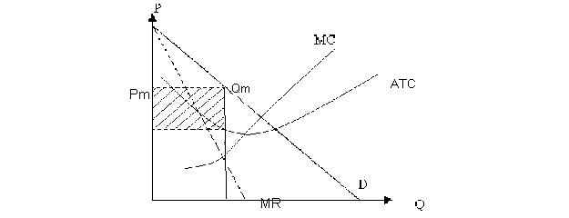 Из точки пересечения МС и МR поднимем вертикальную линию до ее пересечения с кривой спроса. Это будет точка Qm. Проекция точки Qm на линию цены – это точка РM.. Это цена, которую установит монополист на свою продукцию.